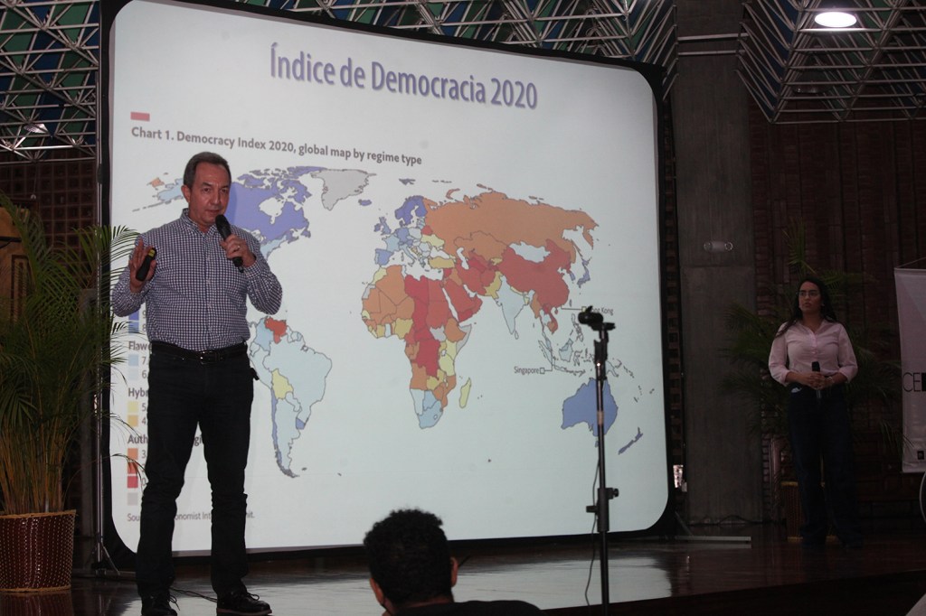 Durante el Encuentro, el director del Centro de Estudios Políticos, Benigno Alarcón, y la coordinadora Juvenil de Creemos Alianza Ciudadana y del Foro Permanente de Juventudes, María José Brito, explicaron que según importantes índices como el de The Economist, Venezuela ya no califica como democracia, tanto que de haber estado en el puesto 97 en 2013, cayó a la posición 140 en 2019, y al lugar 143 en 2020, incluso por debajo de países como Cuba.