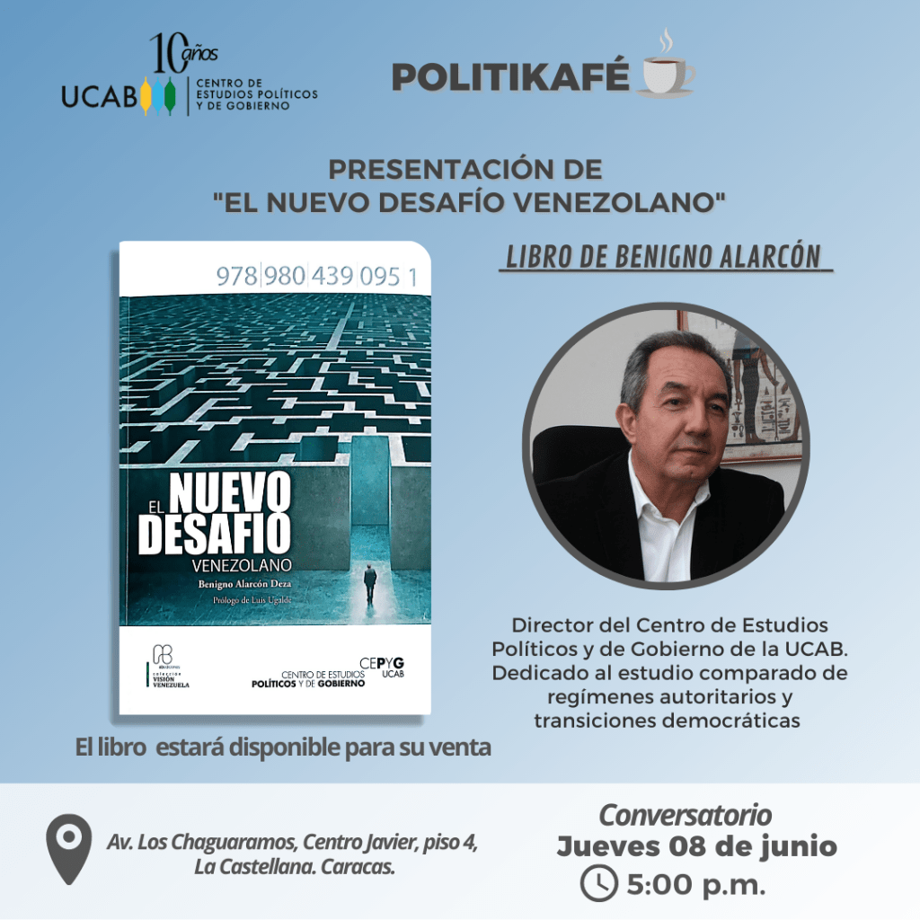 El Centro de Estudios Políticos y de Gobierno de la Universidad Católica Andres Bello invita a la presentación de «El Nuevo Desafío Democrático», un libro de Benigno Alarcón, quien durante años se ha dedicado al estudio comparado de regímenes autoritarios y transiciones democráticas.