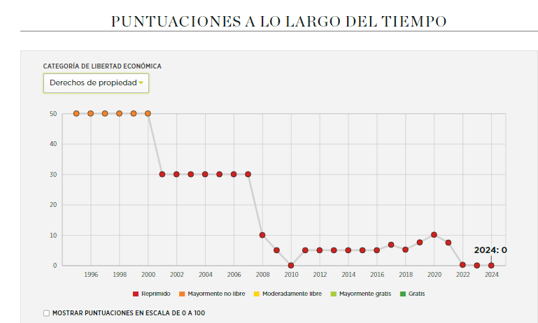 1. Evolución durante el tiempo de los derechos de propiedad en Venezuela.