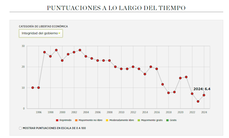 2. Evolución durante el tiempo de la integridad del gobierno en Venezuela.